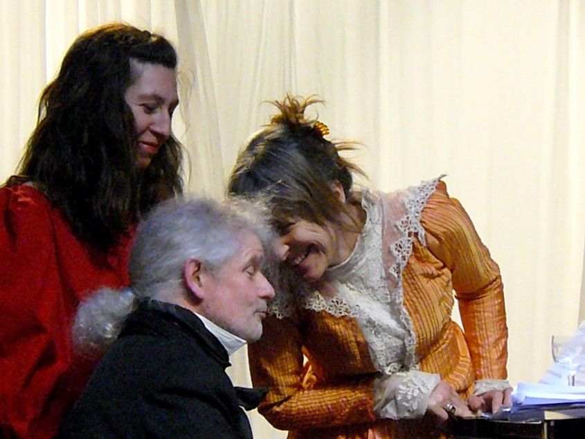 "Givre , spectacle musical de conception originale, invite le public à l’une des réunions conviviales, musicales et intellectuelles appelées « Schubertiades » qui avaient traditionnellement lieu dans le salon de l’un ou de l’autre des amis du compositeur Franz Schubert, génie mort trop jeune et méconnu. Sur scène, six artistes polyvalents : chanteurs lyriques, instrumentistes (piano, violon, violoncelle) et comédiens, se préparent à vivre une soirée festive - mais ce soir là Schubert tarde à venir… Pièce de théâtre musical à part entière, Givre, plus chaleureux et moins « emprunté » qu’un spectacle classique, nous fait revivre l’atmosphère particulière de la Schubertiade historique. Il se peut que de manière impromptue, tout comme à l’époque, arrivent des invités « surprise » pour se joindre aux artistes et interpréter, seuls ou de concert avec les comédiens, des œuvres préparées en amont. Il se peut même que les spectateurs se découvrent capables, encouragés par un petit verre de vin blanc, de chanter ensemble l’un ou l’autre couplet d’un Lied... Cette forme ouverte permettra au public, convive ici plus que spectateur, de toucher du cœur la musique de Schubert, tout en se confrontant à quelques réflexions essentielles et en somme très actuelles sur l’amitié, le statut de l’artiste et le rôle de l’art dans la société. Durée 1h45"